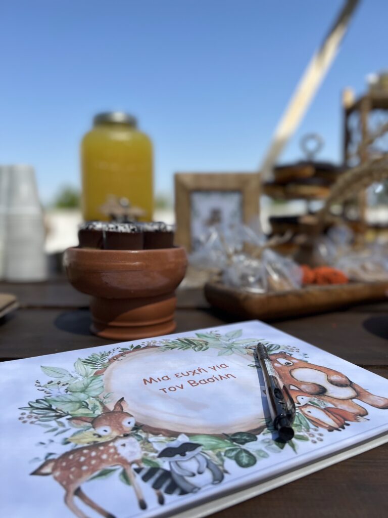 Διακόσμηση του χώρου της δεξίωσης μετά τη βάπτιση, προσαρμοσμένη στο θέμα.